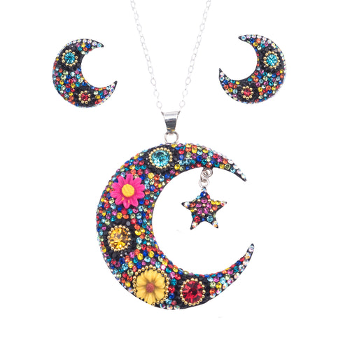 Juego de 4 piezas, aretes, cadena y dije, plata 9.25