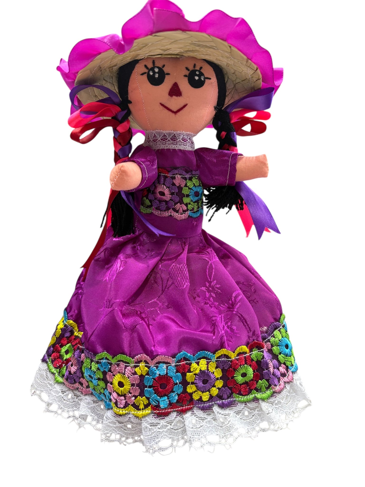 Lleva contigo un pedacito de México con esta hermosa muñeca Lele pastora, elaborada de manera artesanal con gran detalle. Su atuendo incluye un vestido y blusa bordados a mano que resaltan los colores y tradiciones mexicanas.