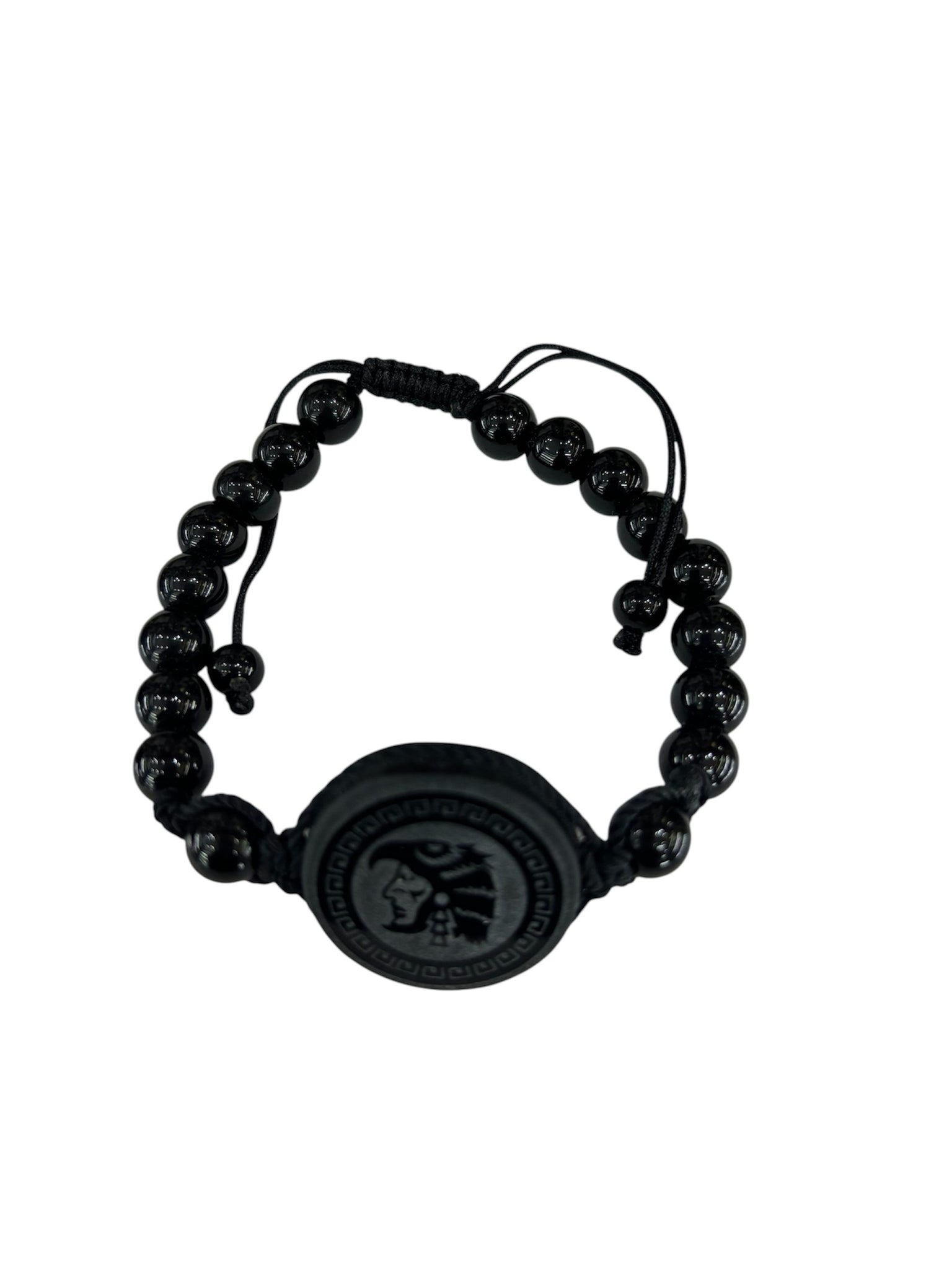 ✨ Pulsera Ajustable de Obsidiana – Diseño Prehispánico (Doble Cara)