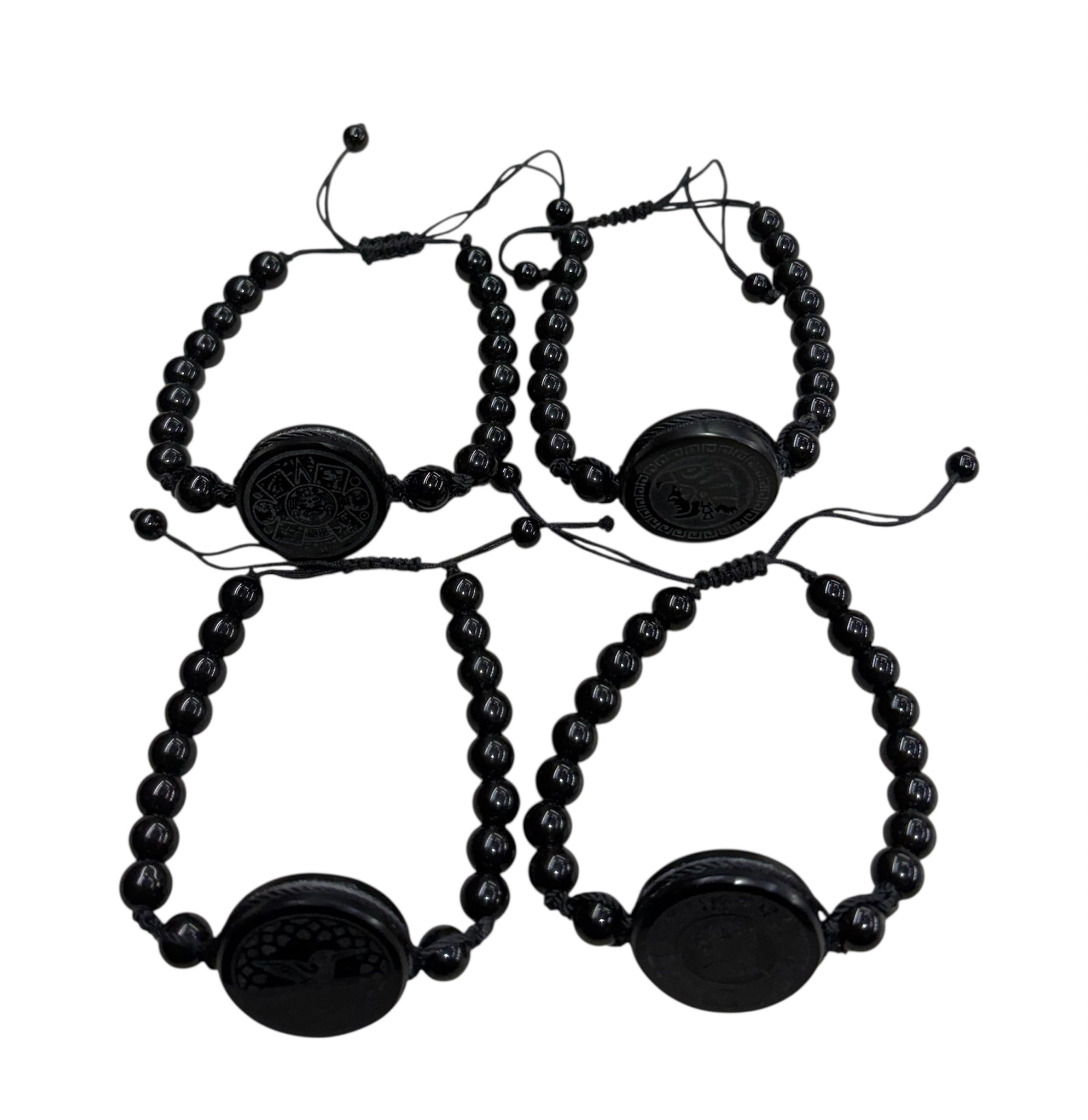 Porta con orgullo esta pulsera de obsidiana natural de doble cara, tallada a mano por artesanos mexicanos, disponible en los siguientes diseños simbólicos: